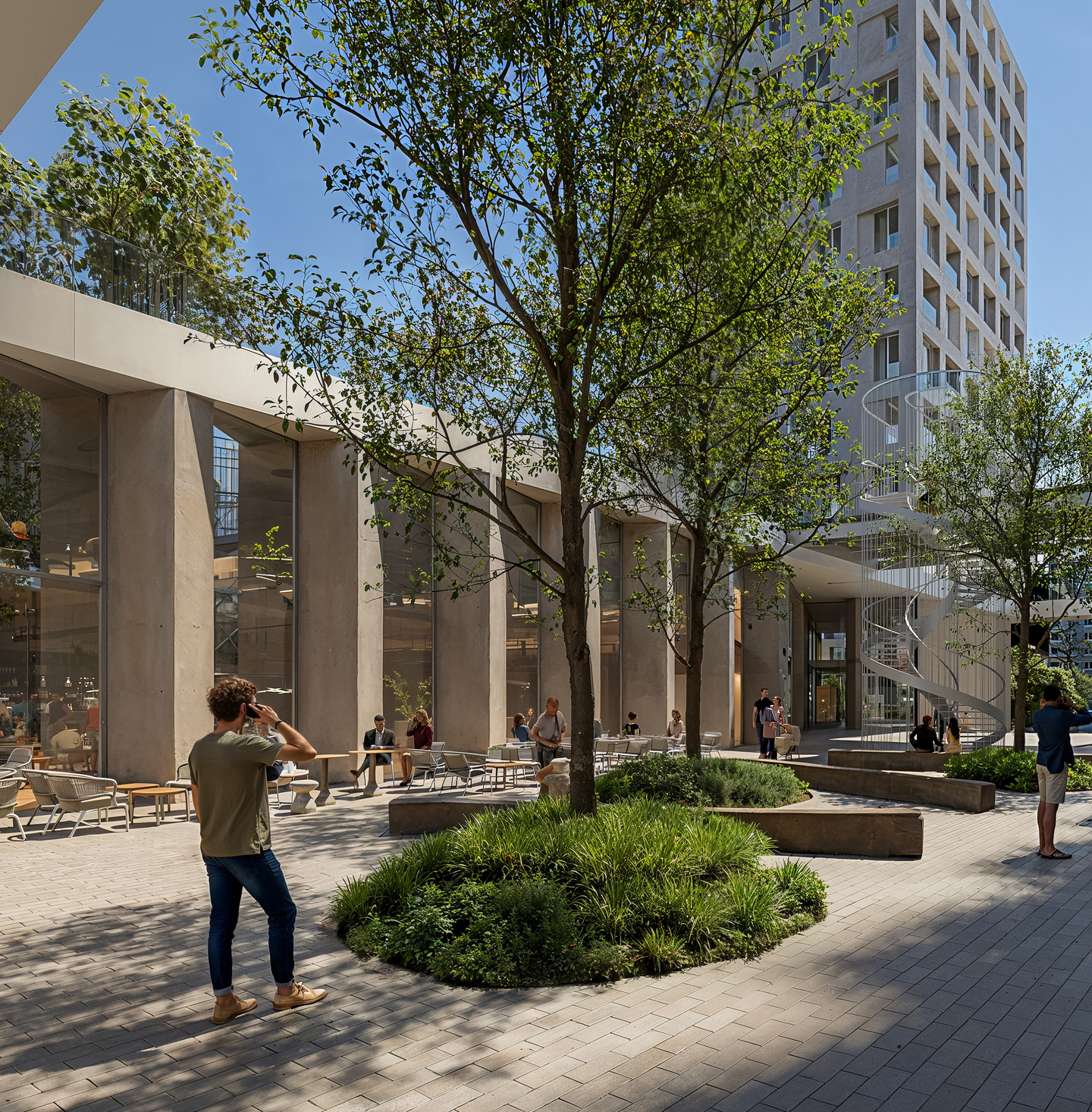 Součástí lokality budou také kavárny, bistra či restaurace, které přirozeně doplní veřejný prostor a vytvoří místa pro krátké zastavení i delší posezení. Skladba služeb bude navržena tak, aby podporovala živé, ale klidné centrum čtvrti ‑ místo, které slouží především místním a stává se přirozenou součástí jejich každodenního života.
